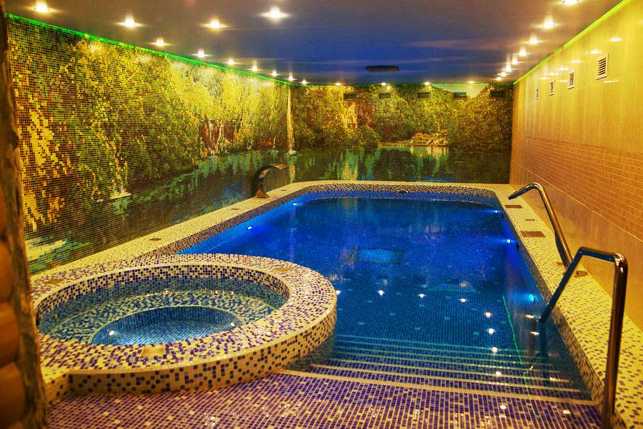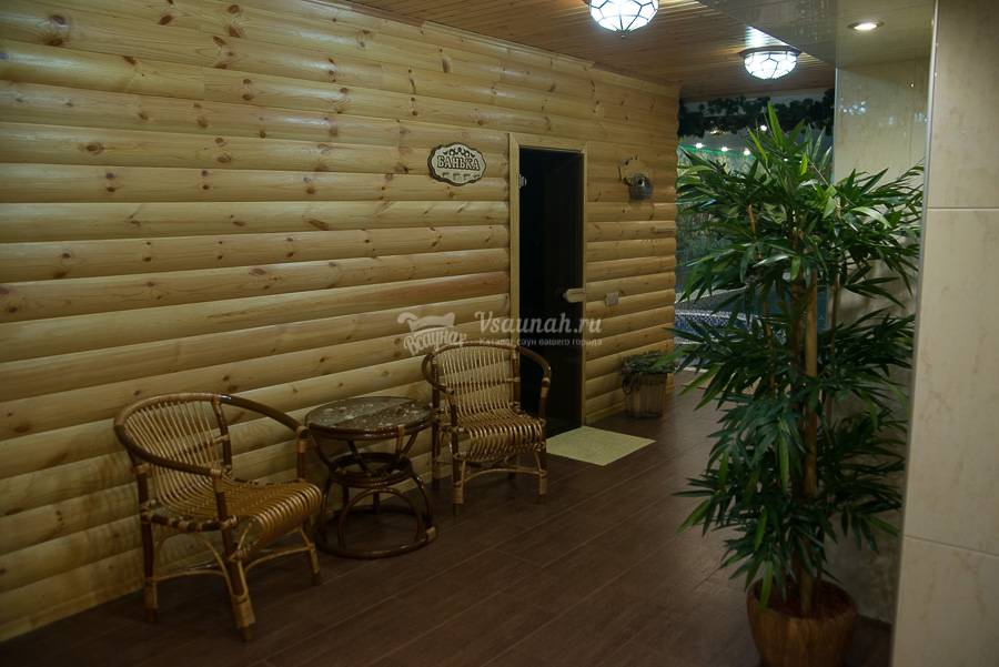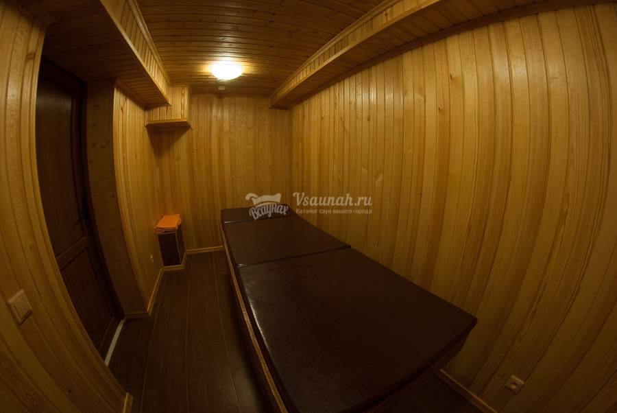 Общей площадью 240 м2.В раздевалке для гостей предоставляются полотенца, простыни, тапочки, фен. Парилка с березовыми, дубовыми или эвкалиптовыми вениками и аромамаслами. Есть санузел, душевые кабины, оборудованная массажная комната. Вся площадь бани оснащена теплыми полами.